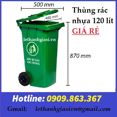 - Thùng rác công cộng 120 lít nắp kín: 575 x 480 x 930mm