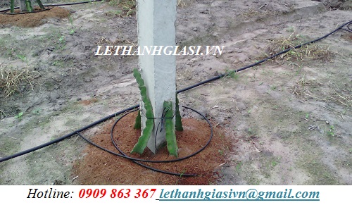 Dây tưới nhỏ giọt 6mm quấn quanh gốc cây thanh long