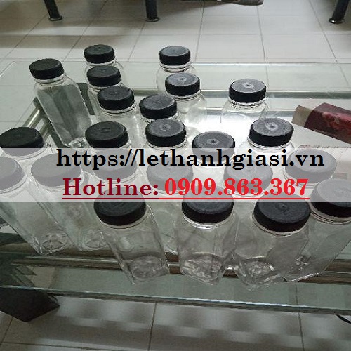 - Chai nhựa vuông nắp đen 250ml